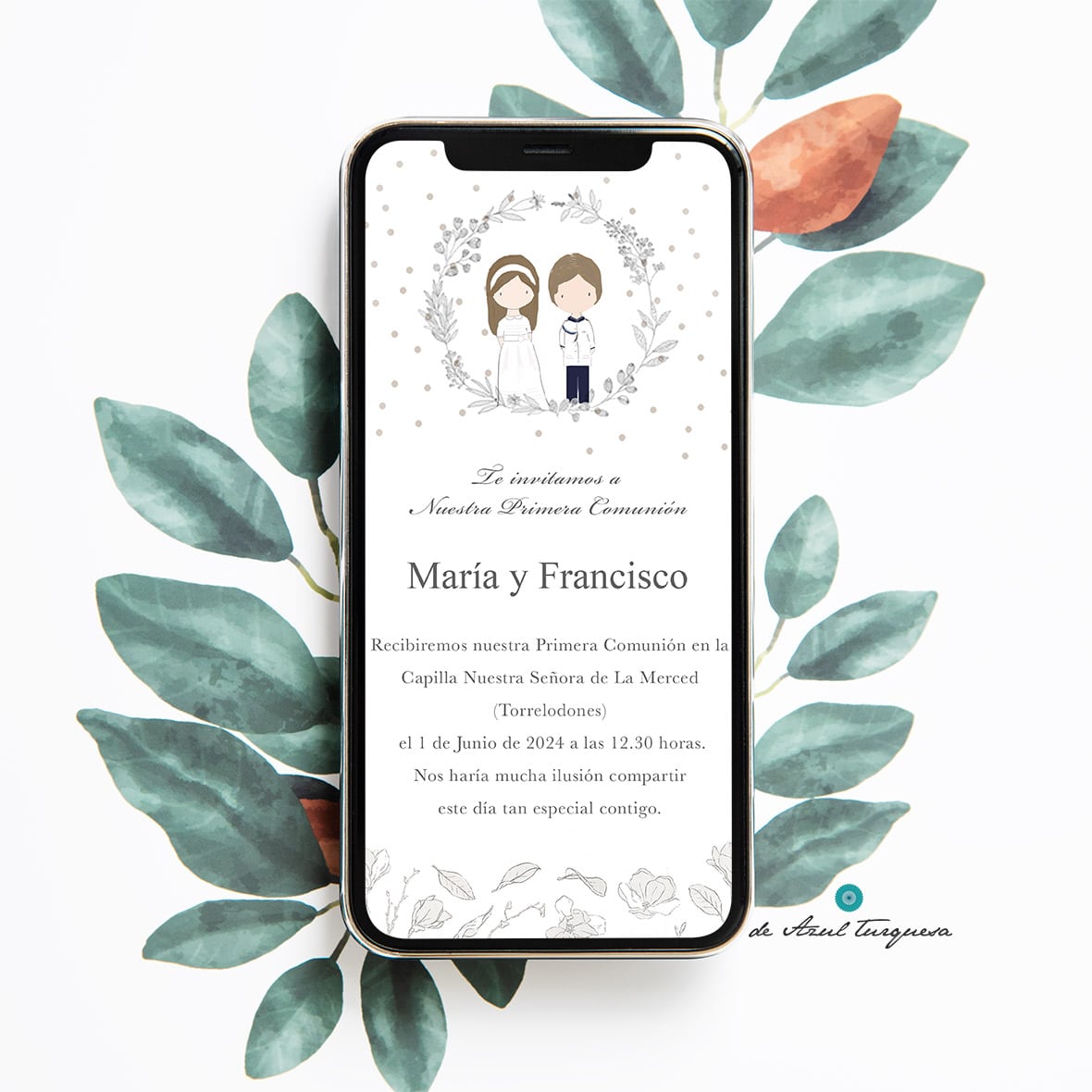 Ten en cuenta que esta invitación no es apta para impresión, es un archivo digital con un tamaño y formato adecuados para dispositivos móviles.